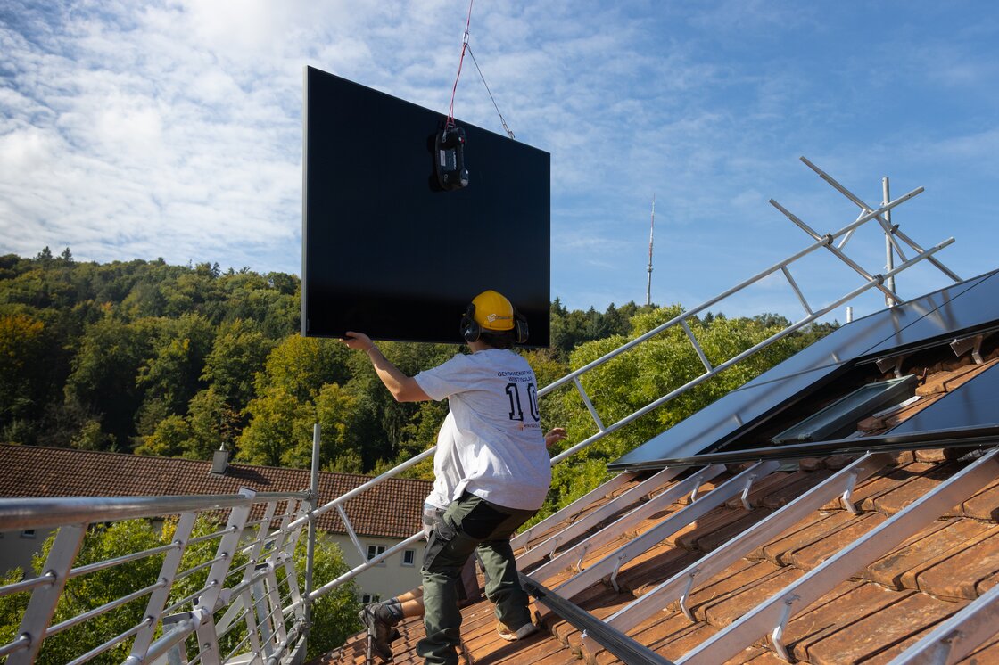 Bei der Installation kam erstmals eine Drohne zum Einsatz, die die Solarpanels direkt aufs Dach transportierte. Diese Methode ist schneller, effizienter und sicherer als der herkömmliche Transport über Gerüste. Mit der Drohne konnte etwa alle zwei bis drei Minuten ein Modul montiert werden.