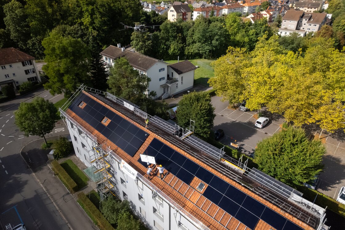 Mit der Drohne aufs Dach: die neue Solaranlage an der Flüelistrasse