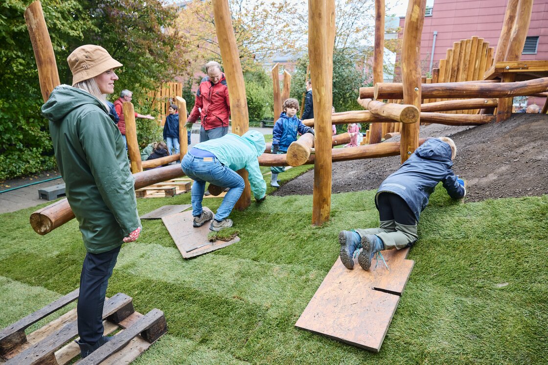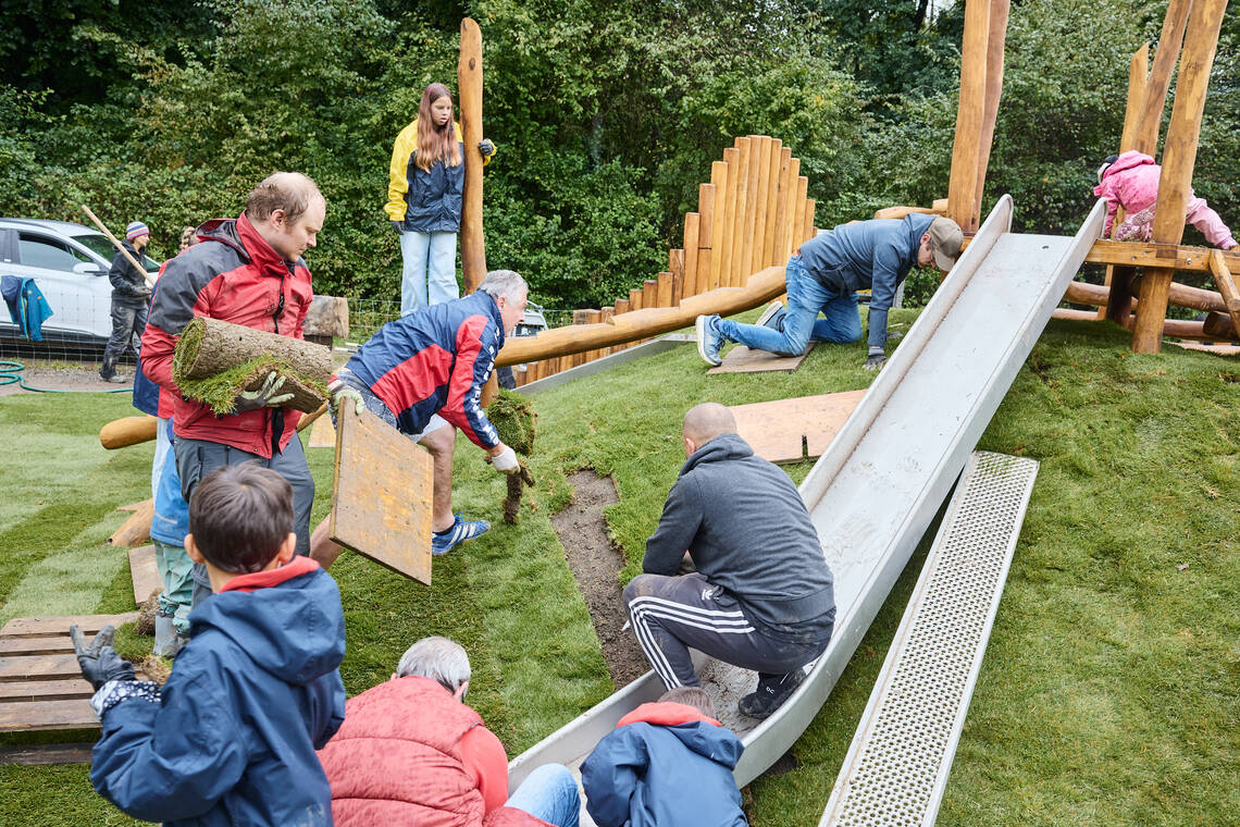 Der Spielplatz in der HGW-Siedlung Neftenbach war in die Jahre gekommen und wird 2025 gemeinsam neu geplant. Im Workshop im Mai mit Bewohner:innen, dem Spielplatzbauer und der HGW werden Ideen und Bedürfnisse gesammelt und die neue Gestaltung entwickelt. Einige Monate später, im September, helfen am Mitmachtag dann Gross und Klein beim Verlegen des Rollrasens und beim Aufbau der neuen Anlage. Mehr dazu