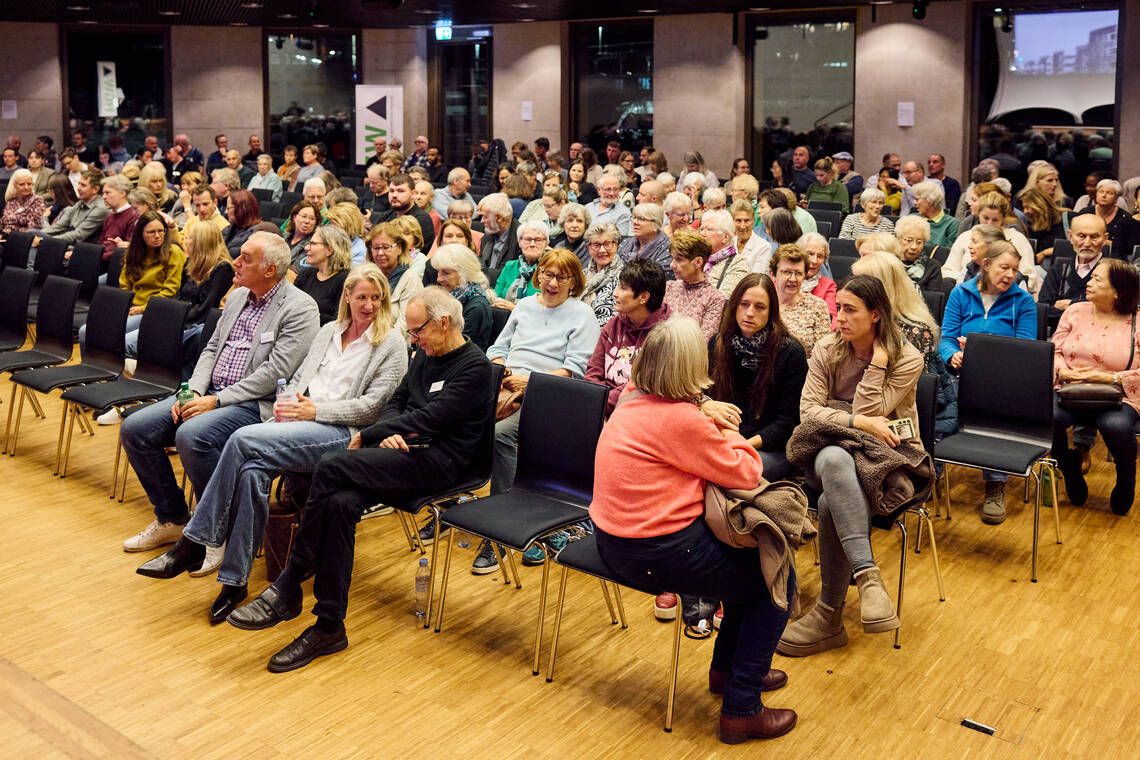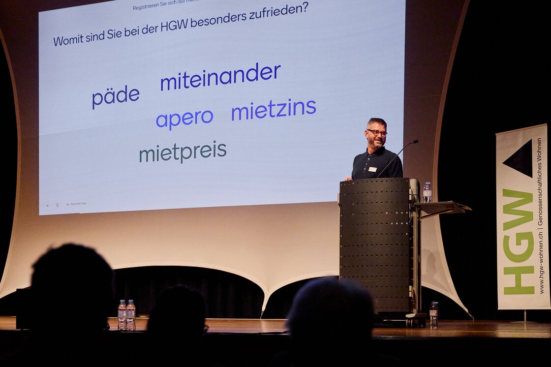 Über 350 Bewohner:innen nehmen an der HGW-Mieterinfo teil, online und vor Ort. Neben aktuellen Themen prägt der interaktive Frageteil den Abend: Was gefällt am Leben in der HGW? Wo braucht es Verbesserungen? Und was stärkt das Zusammenleben? Die Rückmeldungen gaben Hinweise darauf, wo wir als HGW gut unterwegs sind und wo wir miteinander noch weiterkommen können.