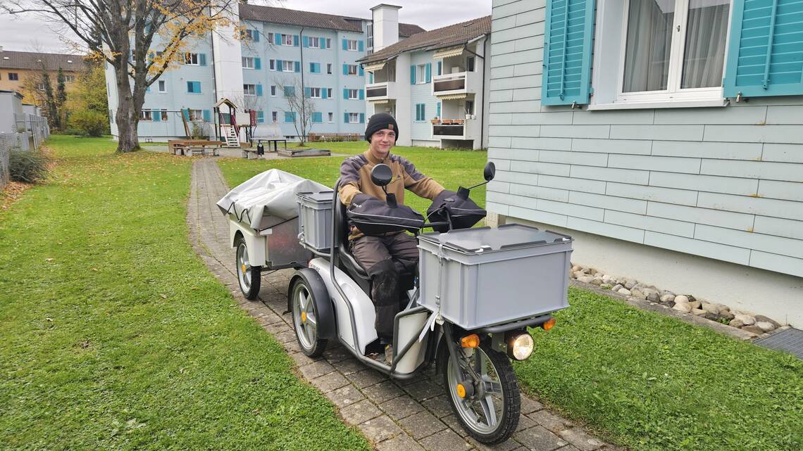 Wie transportiert man Werkzeug und Material schnell und umweltfreundlich durch die Siedlungen? Die Lösung: ein leises, wendiges dreirädriges E-Fahrzeug, mit dem Hauswart Kilian Grob unterwegs ist, und das ganz ohne Führerausweis. Das Kyburz-Fahrzeug bringt alles direkt zu den Häusern und erleichtert ihm den Alltag als Hauswart spürbar. Nun wird geprüft, ob das E-Fahrzeug sich auch für weitere Siedlungen oder Einsätze eignet. Mehr dazu