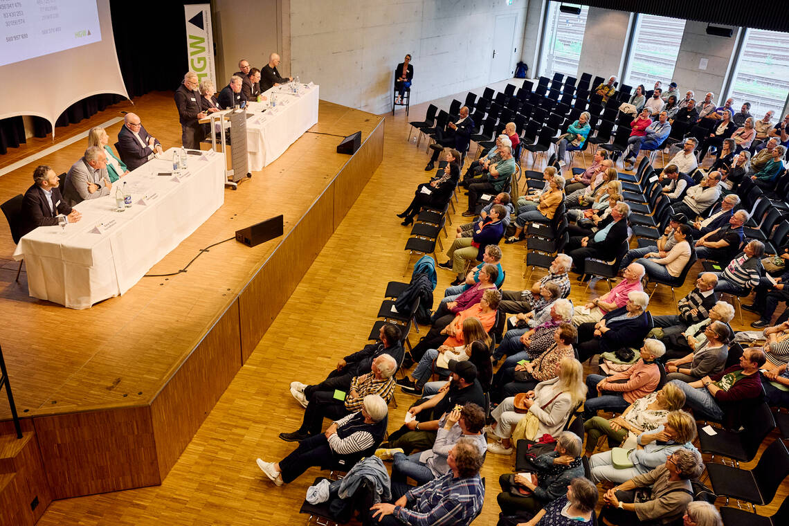 Rund 300 Bewohner:innen und Gäste nehmen an der diesjährigen Generalversammlung teil. Neben Informationen zur Geschäftstätigkeit und dem Jahresabschluss steht auch das Wiedersehen, der Austausch, das Miteinander, im Vordergrund. Der Rückblick mit Kurzfilm