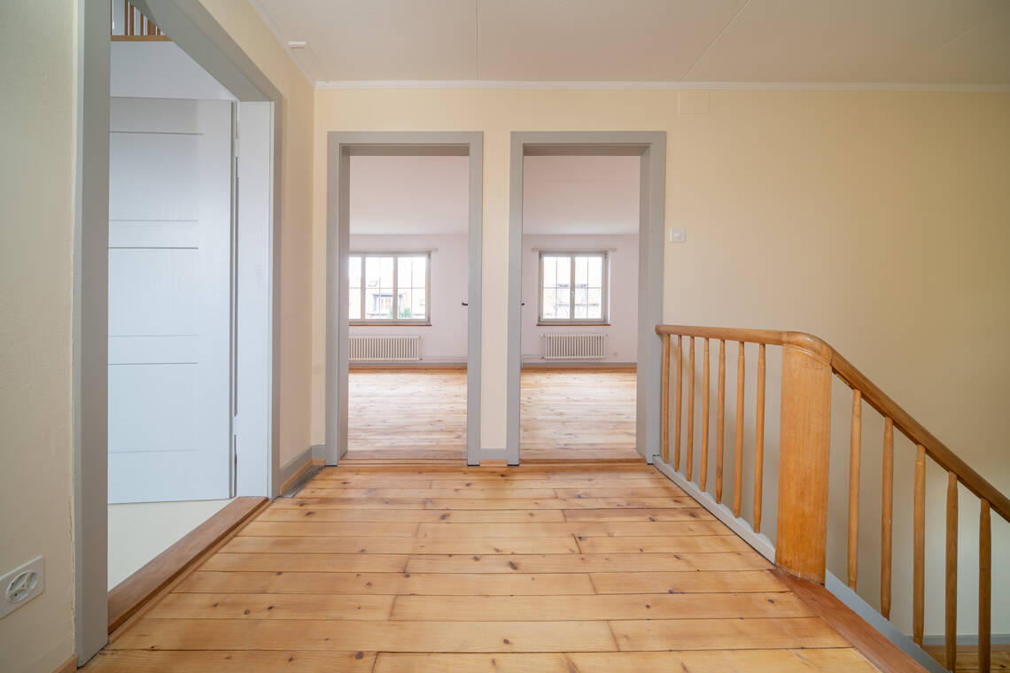 Das HGW-Team auf Ortsbesuch im Grabenacker: In einem der sanierten Häuser gibt das Grabenacker-Projektteam Einblicke in den Planungsprozess, die baulichen Herausforderungen, die Baumaterialien und die nächsten Schritte.