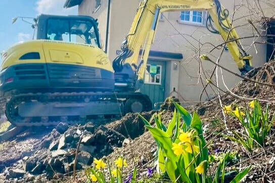 Frühling auf der Baustelle: Zwischen Baggern, Lastwagen und Bauschutthügeln kommen die ersten Triebe hervor und es leuchten die Frühblüher. Im Grabenacker wächst in vielerlei Hinsicht Neues. Zum Bauprojekt