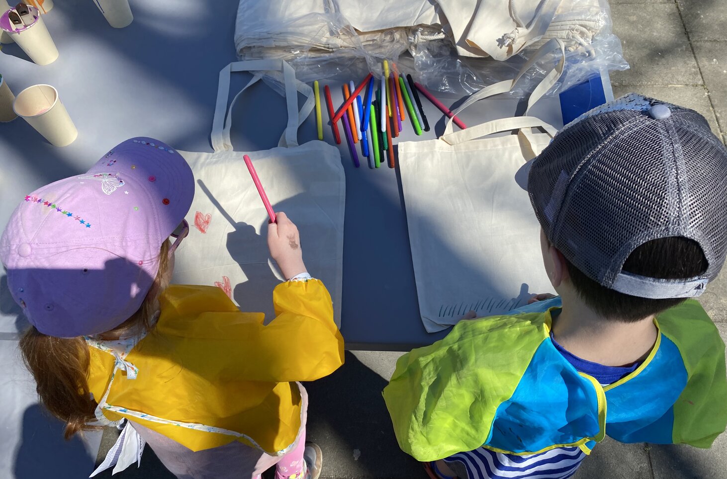 Im Mittelpunkt standen sieben Container, die Schritt für Schritt zu farbigen Hinguckern wurden. Mit viel Fantasie und Freude entstanden Motive, die bleiben – sichtbar im Alltag in der Siedlung. Auch daneben gab es einiges zu entdecken. Die Kinder konnten eine Stofftasche bemalen und sie gleich mit nach Hause nehmen.